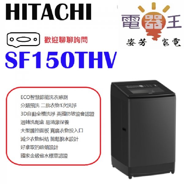 ✿加Line更優惠✿【SF150THV】HITACHI 日立 四段水洗效能變頻直立式洗衣機