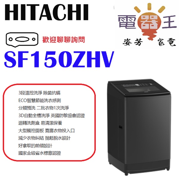 ✿加Line更優惠✿【SF150ZHV】HITACHI 日立 溫水變頻直立式洗衣機 (GG