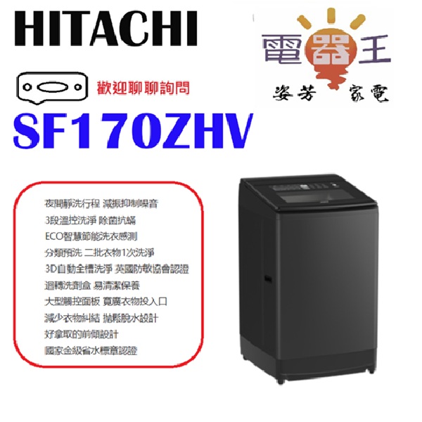 ✿加Line更優惠✿【SF170ZHV】HITACHI 日立 溫水變頻直立式洗衣機 (GG