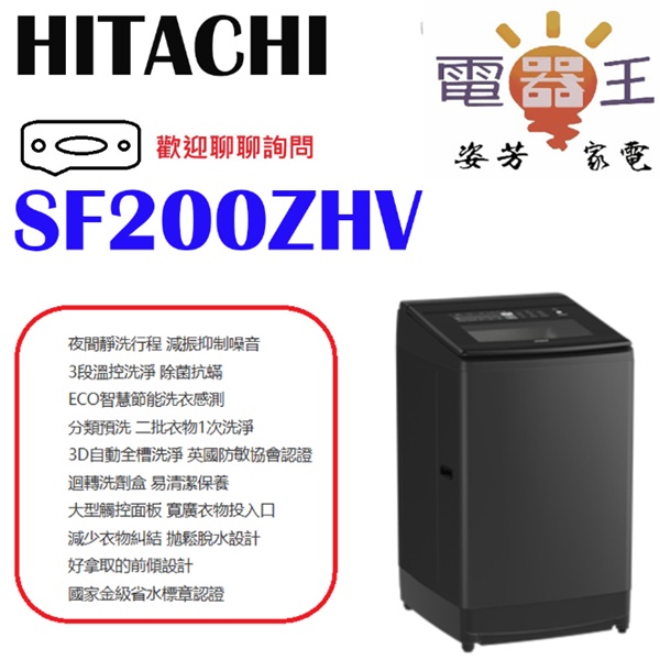 ✿加Line更優惠✿【SF200ZHV】HITACHI 日立 溫水變頻直立式洗衣機 (GG