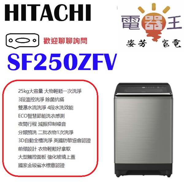 ✿加Line更優惠✿【SF250ZFV】HITACHI 日立 溫控變頻直立式洗衣機 (SS