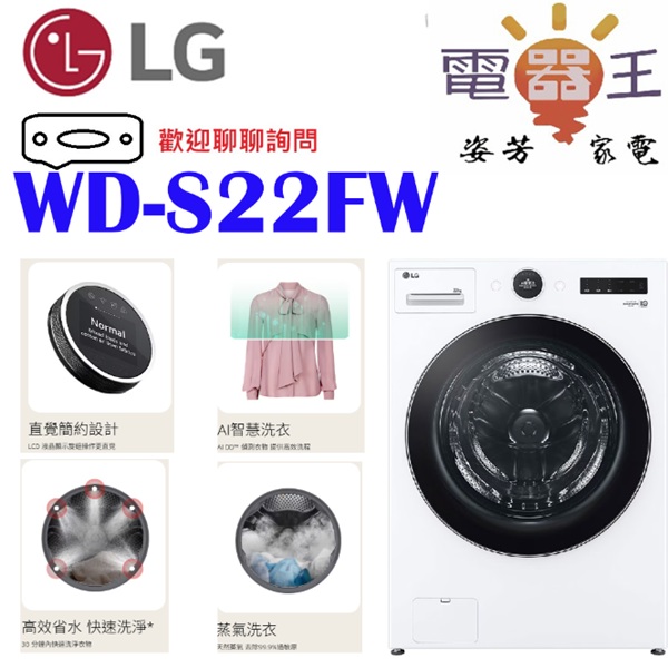 ✿加Line更優惠✿【WD-S22FW】LG 樂金 蒸氣滾筒洗衣機(蒸洗脫)|22kg