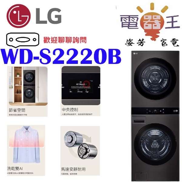 ✿加Line更優惠✿【WD-S2220B】LG 樂金WashTower™ AI 智控洗乾衣