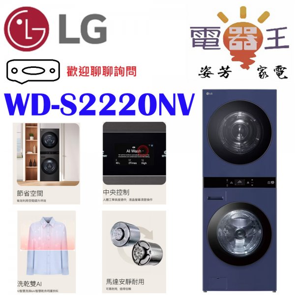 ✿加Line更優惠✿【WD-S2220NV】LG 樂金WashTower™ AI 智控洗乾
