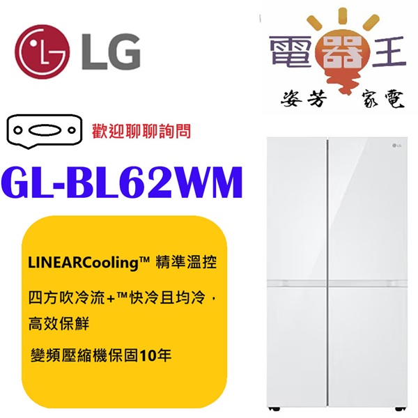 ✿加Line更優惠✿【GL-BL62WM】LG 樂金 智慧變頻對開冰箱 653L 亞麻白