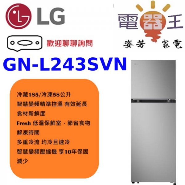 ✿加Line更優惠✿【GN-L243SVN】LG 樂金 243L 智慧變頻雙門冰箱 -星辰
