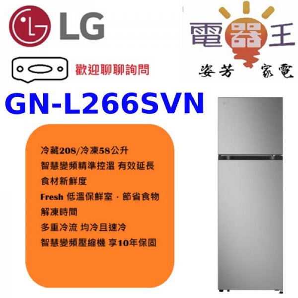 ✿加Line更優惠✿【GN-L266SVN】LG 樂金 266L 智慧變頻雙門冰箱-星辰銀