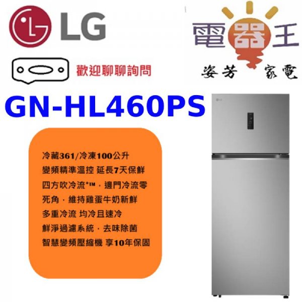 ✿加Line更優惠✿【GN-HL460PS】LG 樂金 461L 智慧變頻雙門冰箱-星辰銀
