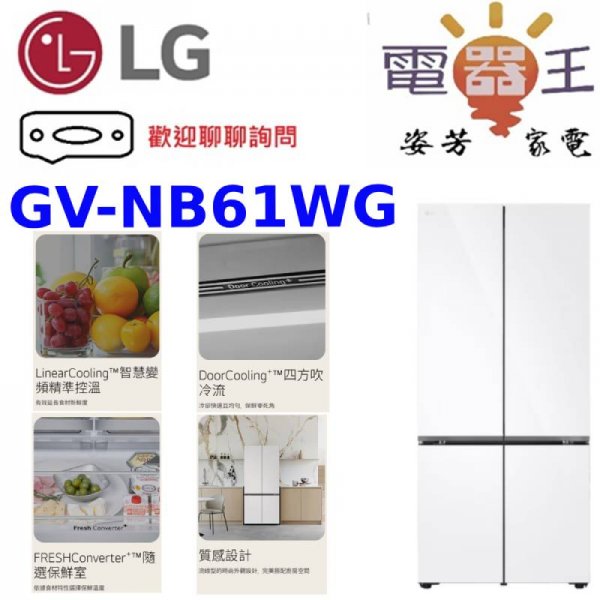 ✿加Line更優惠✿【GV-NB61WG】LG 樂金 619L 智慧變頻四門冰箱-雲朵白