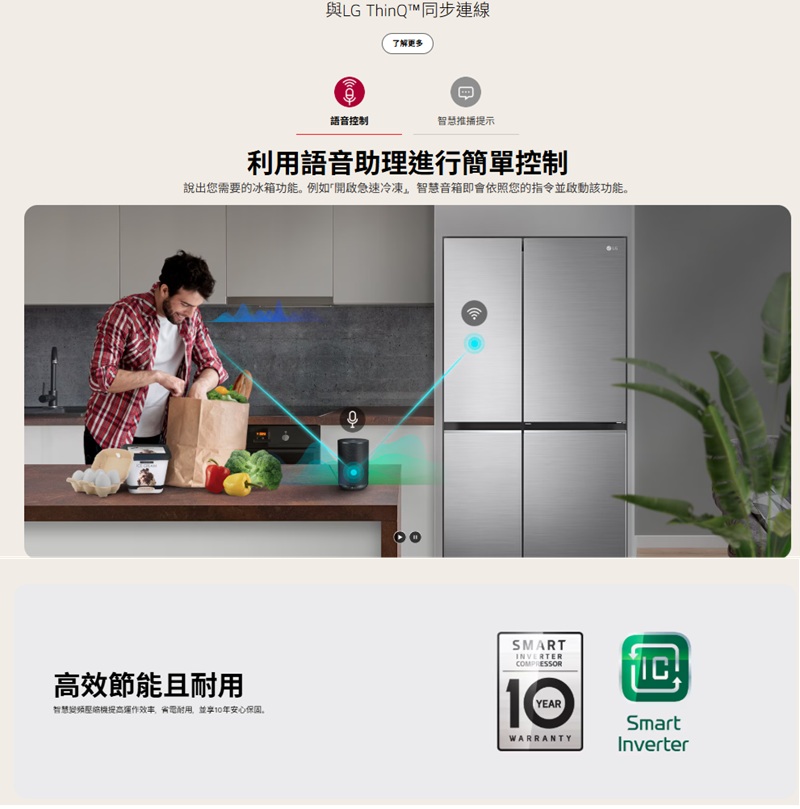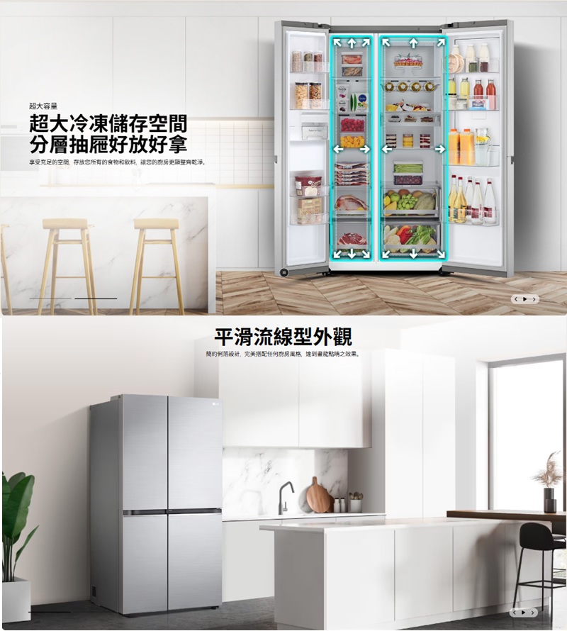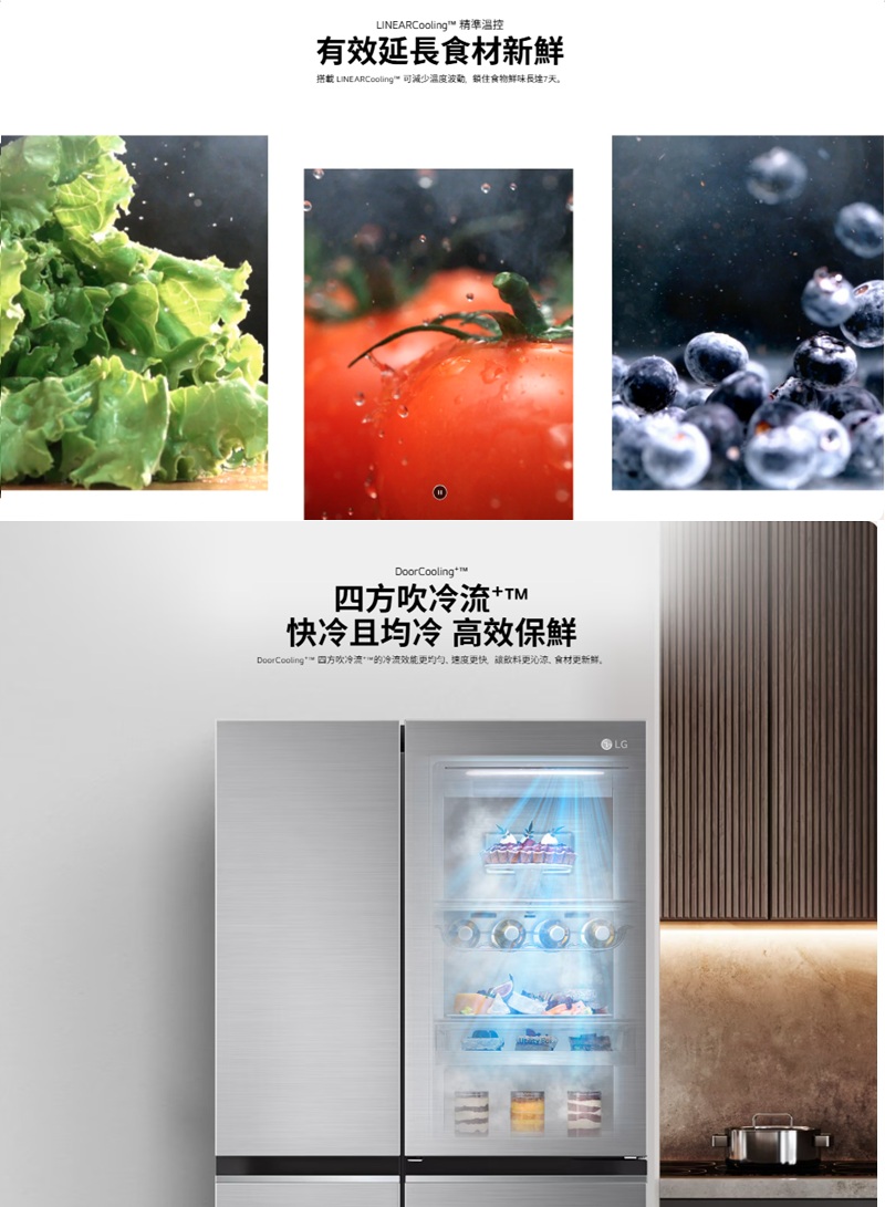 .Door-in-Door™魔術空間 輕鬆拿取食物更省電 .直驅變頻壓縮機精準溫控,延長7天保鮮 .四方吹冷流+™,邊門冷流零死角,維持雞蛋牛奶新鮮 .冷凍冷藏超大容量 分層儲存更靈活 .內建WiFi 遠端操控更便利
