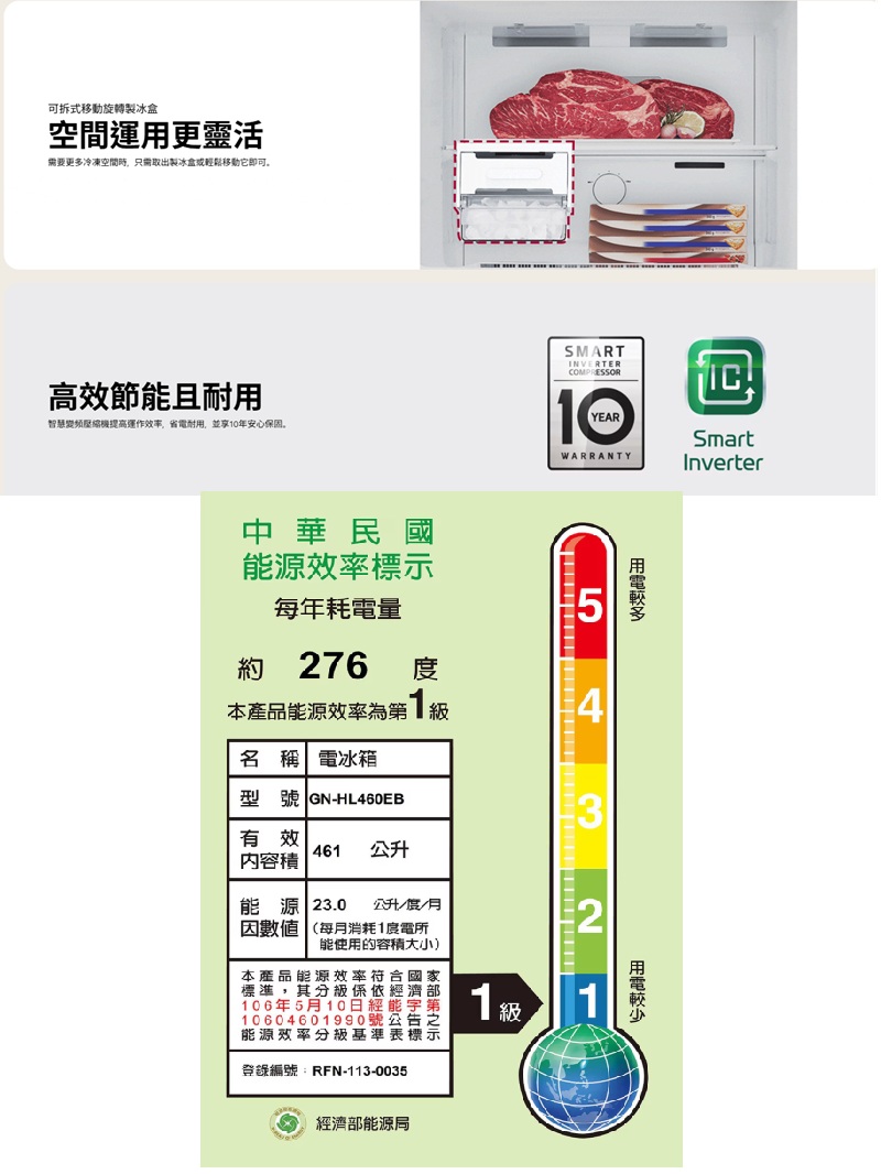 變頻精準溫控 延長7天保鮮 >四方吹冷流⁺™,邊門冷流零死角,維持雞蛋牛奶新鮮 >多重冷流 均冷且速冷 >鮮淨過濾系統,去味除菌 >智慧變頻壓縮機 享10年保固