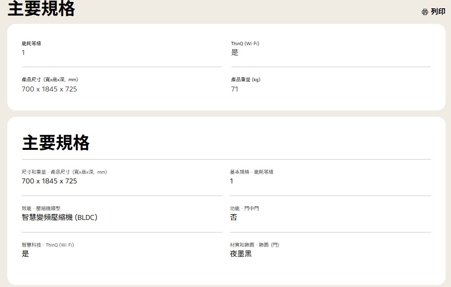 461L-夜墨黑 冷藏361/冷凍100公升 產品尺寸(寬x高x深)700 x 1845 x 725 mm