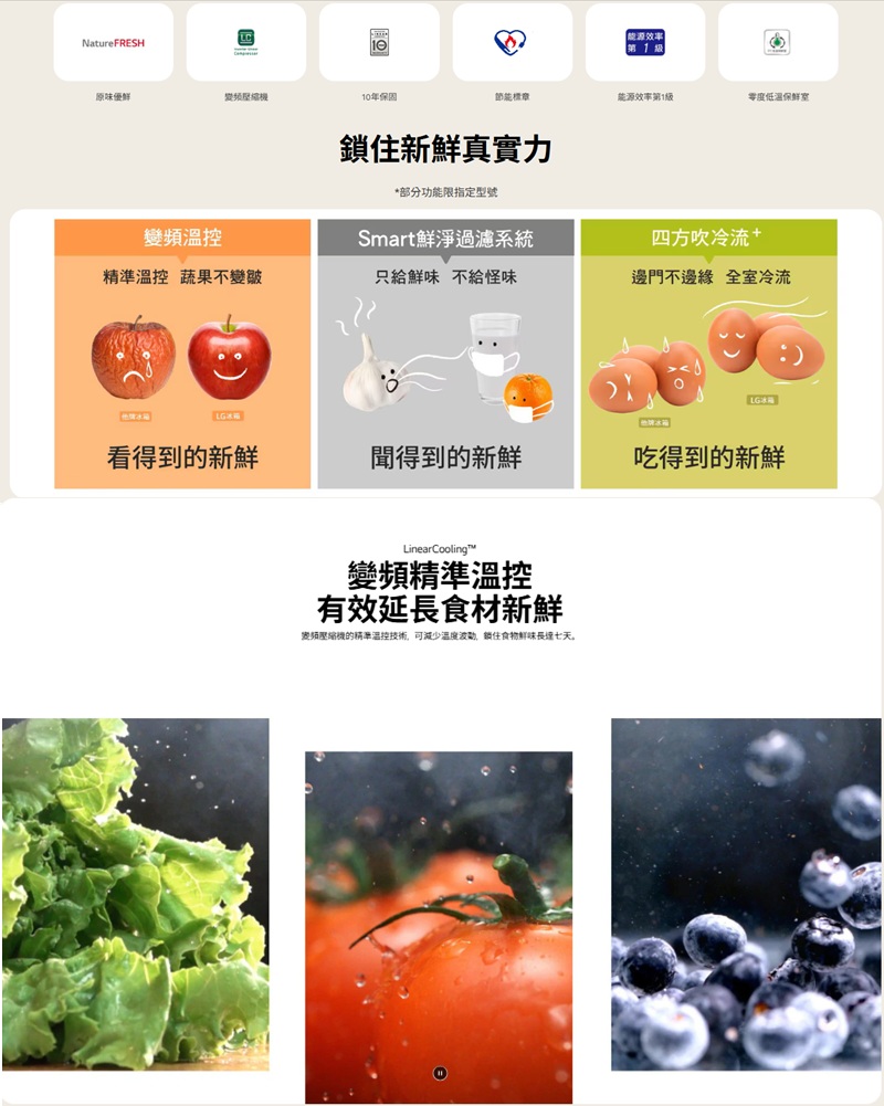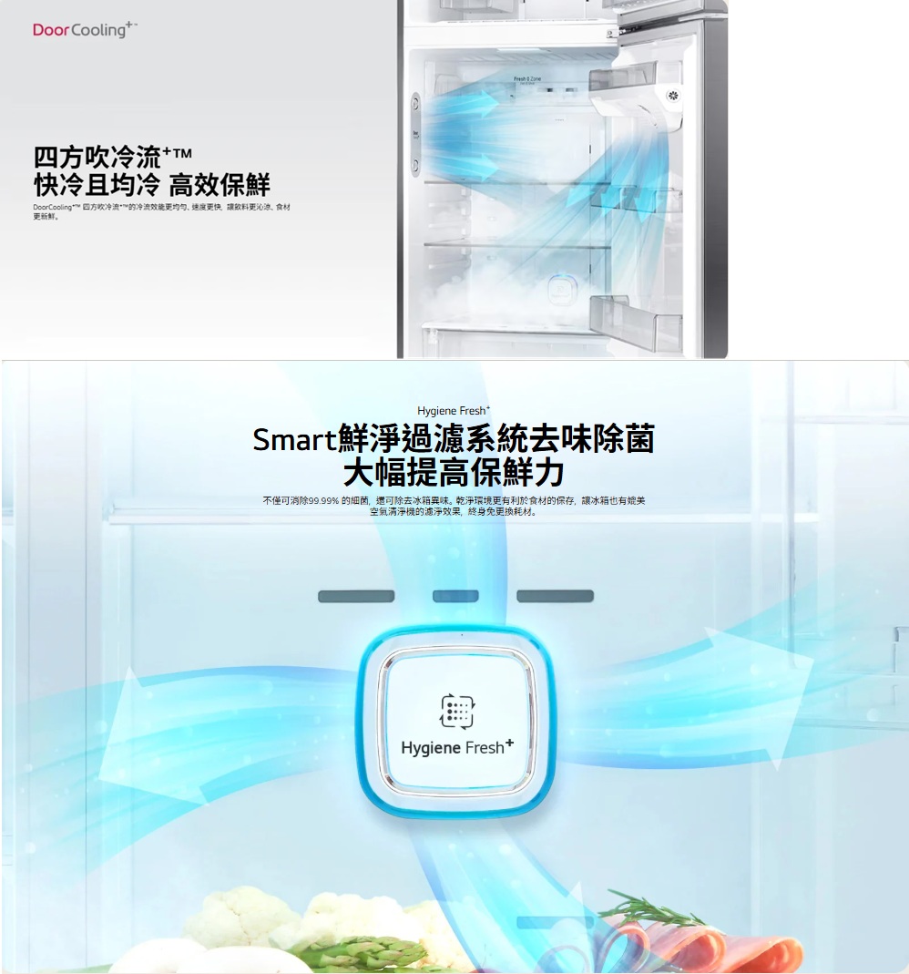 >美型微曲玻璃鏡面設計 >變頻壓縮機精準溫控,延長7天保鮮 >四方吹冷流+,邊門冷流零死角,維持雞蛋牛奶新鮮 >鮮淨過濾系統,INTERTEK認證殺菌99.9%,有效去味除菌 | 0度低溫保鮮室,快速料理免解凍 >可拆式移動旋轉製冰盒,空間靈活運用