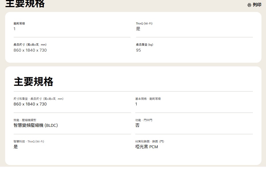 608L 夜墨黑 冷藏430/冷凍178公升 產品尺寸(寬x高x深)860 x 1840 x 730 mm