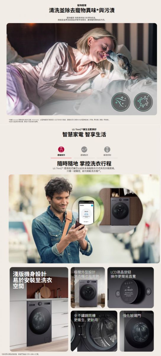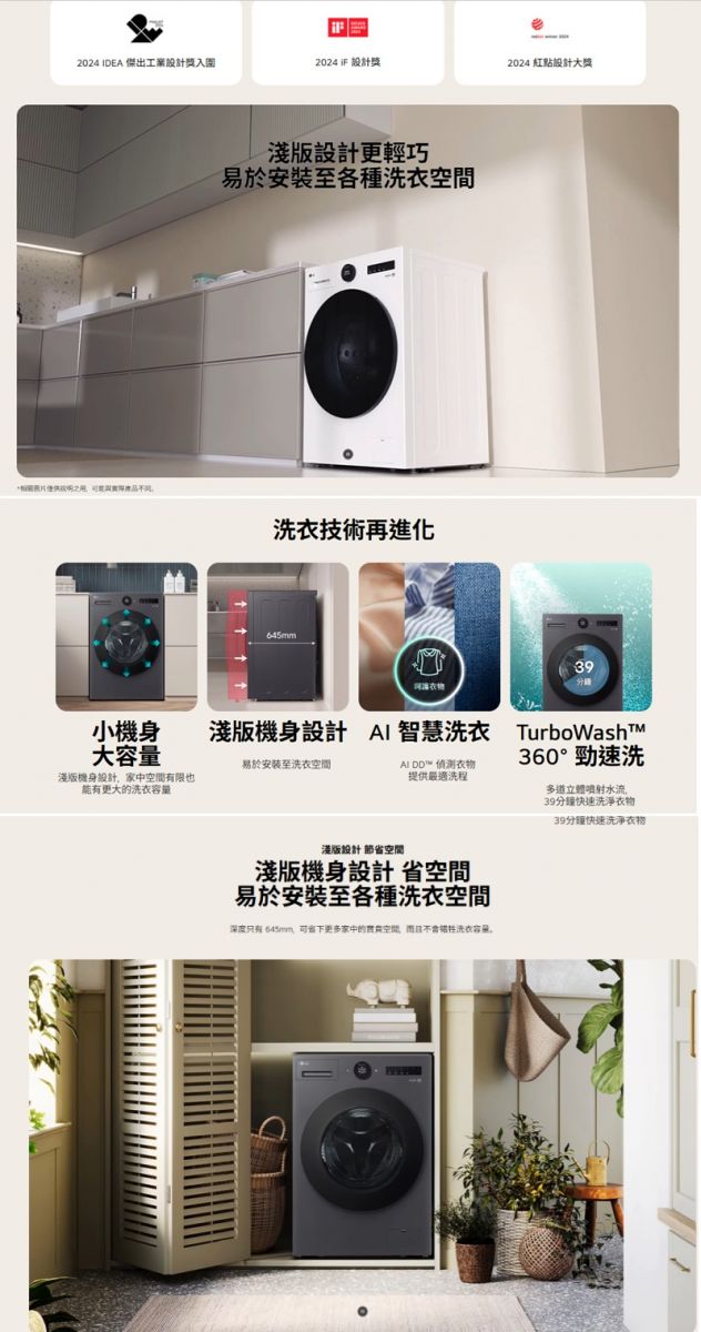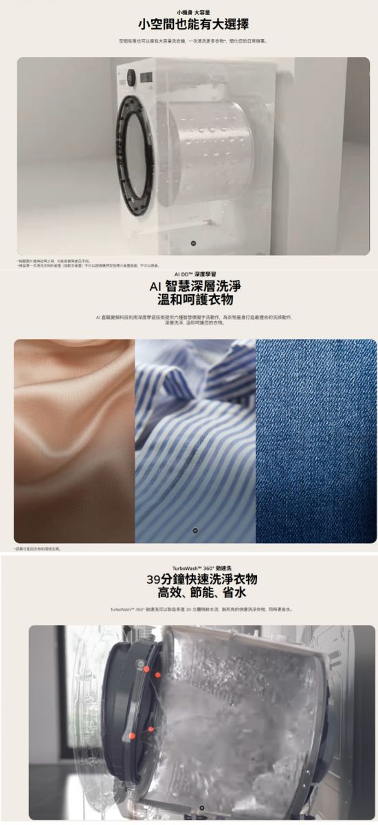 >淺版好安裝 小空間也有大選擇 >AI DD™ 智慧直驅變頻馬達:AI 智慧感測 提供最適洗程 >LCD智慧顯示旋鈕:使用更直覺、內建24種行程 >智慧洗劑投入:自動精準投入 x 密封保存不變質 >Steam™蒸氣洗:60°C天然蒸氣去除99.9%過敏原 >直驅變頻馬達10年保固 更安靜、更耐用