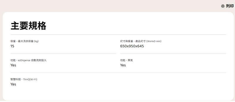 洗:15kg+烘:8kg 夜墨灰 產品尺寸 (WxHxD):650x950x645 mm