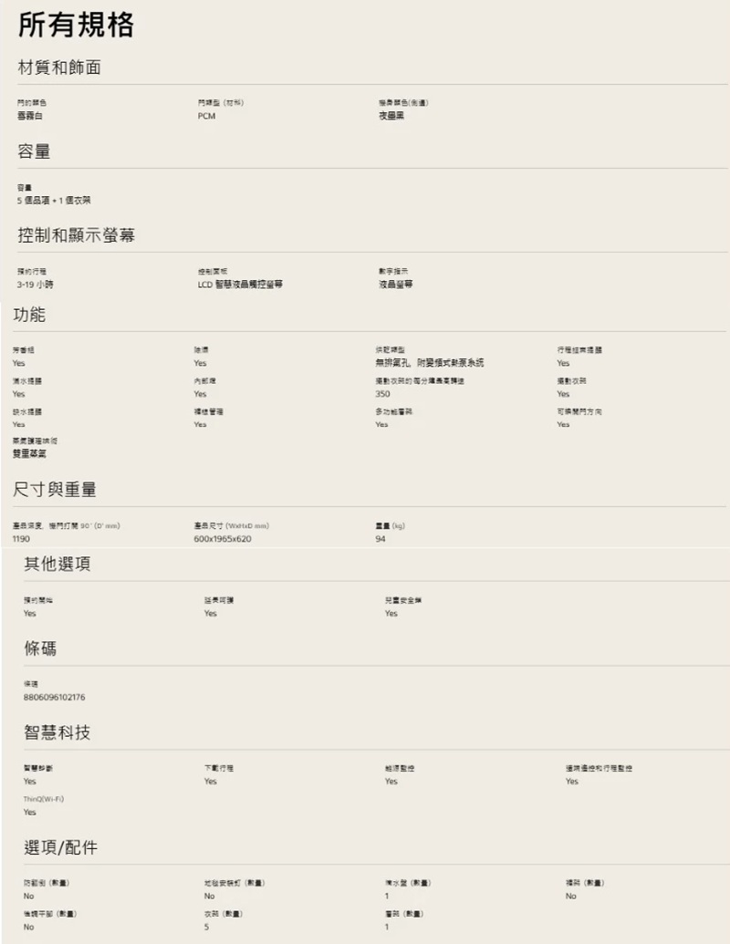 雪霧白/掛燙機款/LCD智慧液晶觸控螢幕 產品尺寸 (WxHxD):600x1965x620 mm
