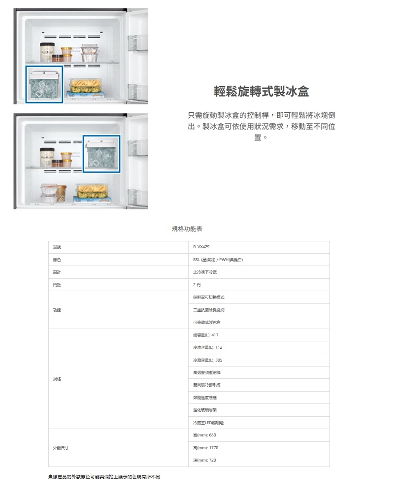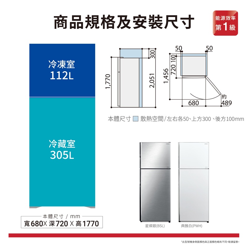 417L 變頻雙門 一級能效 尺寸(寬深高):680X720X1770 mm
