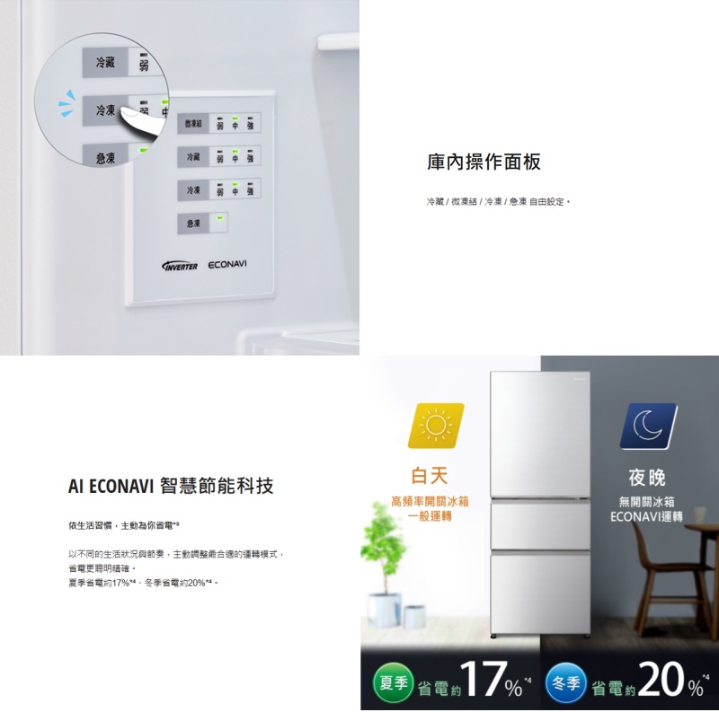 ● 有效容積450L ● -3°C微凍結 ● Ag銀抑菌 ● 冷凍室LED照明 ● AI ECONAVI智慧節能科技 ● 新1級能源效率 ● 冷藏室LED照明 照明亮度提升21%
