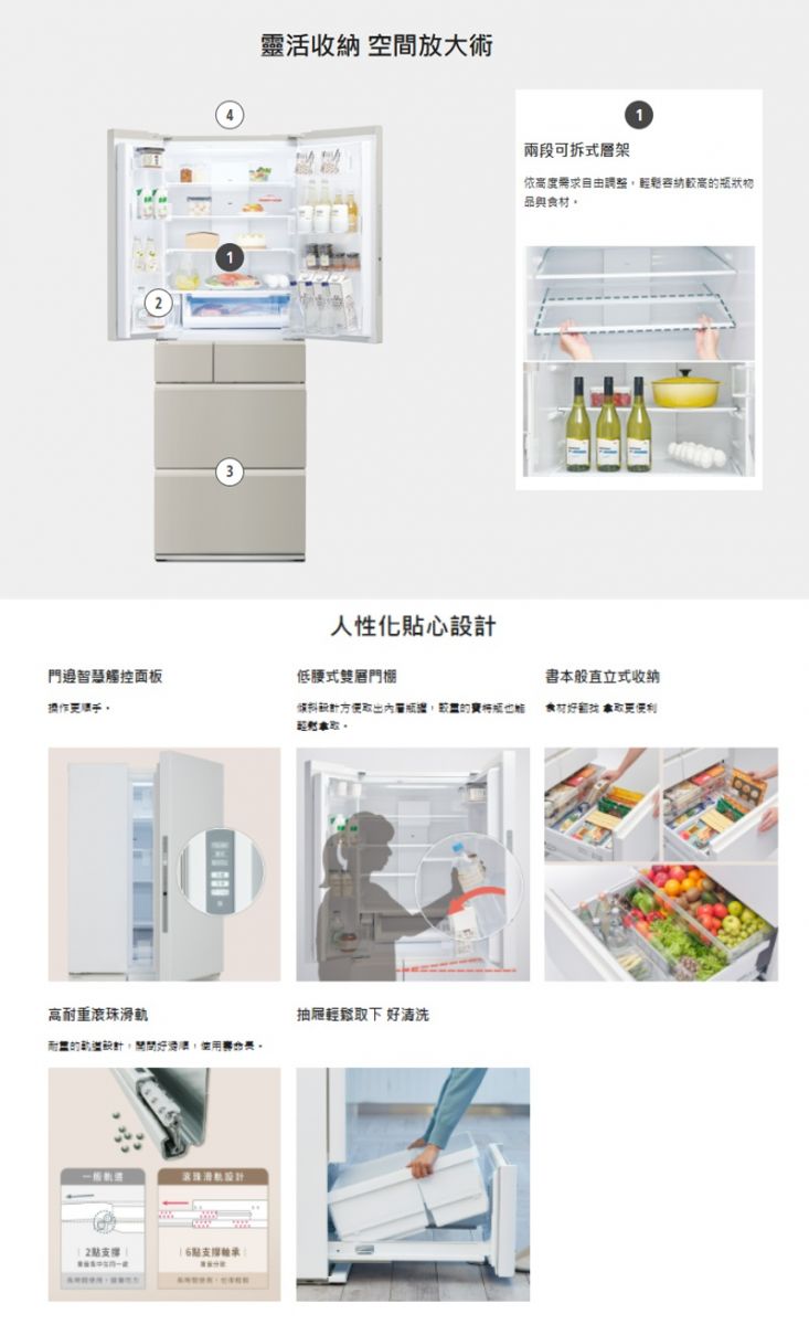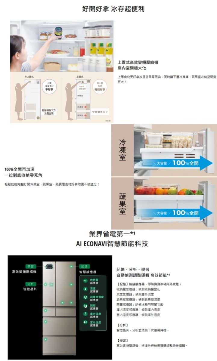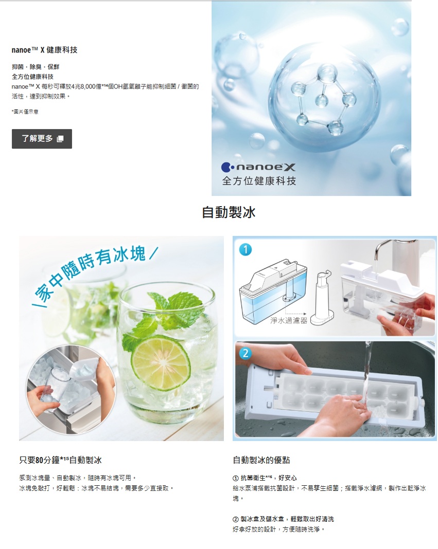 ● 有效容積495L ● 超越國家2027年1級標準※ ● AI ECONAVI智慧節能科技 ● 新鮮凍結 ● -3℃微凍結 ● 智慧保濕蔬果室 ● nanoe™ X 健康科技 ● 自動製冰