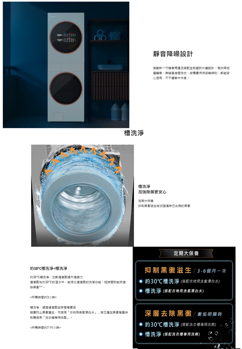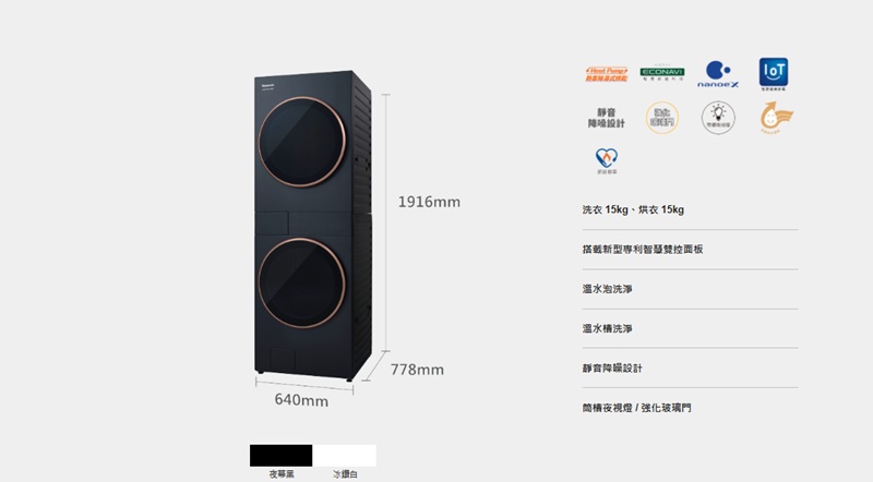 K-夜幕黑/W-冰鑽白 本體尺寸:640W×778D×1916H(單位:mm) 洗:15kg/烘:15kg