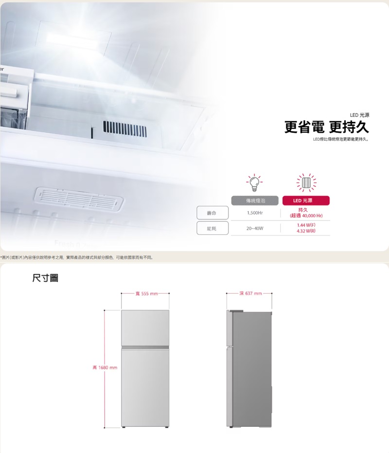 266L / 星辰銀 產品尺寸(寬x高x深,mm):555 x 1680 x 637